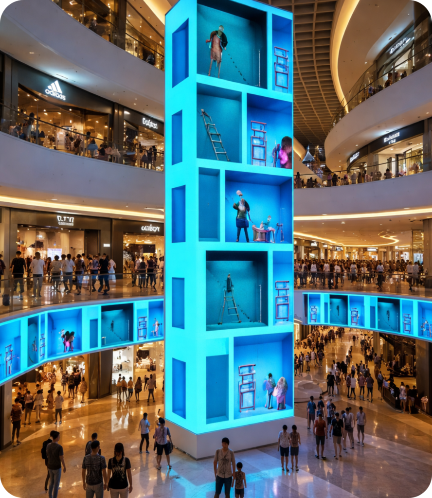 Our LED solutions are designed as complete systems display, structure, control and support tailored to the space, viewing distance and usage pattern.