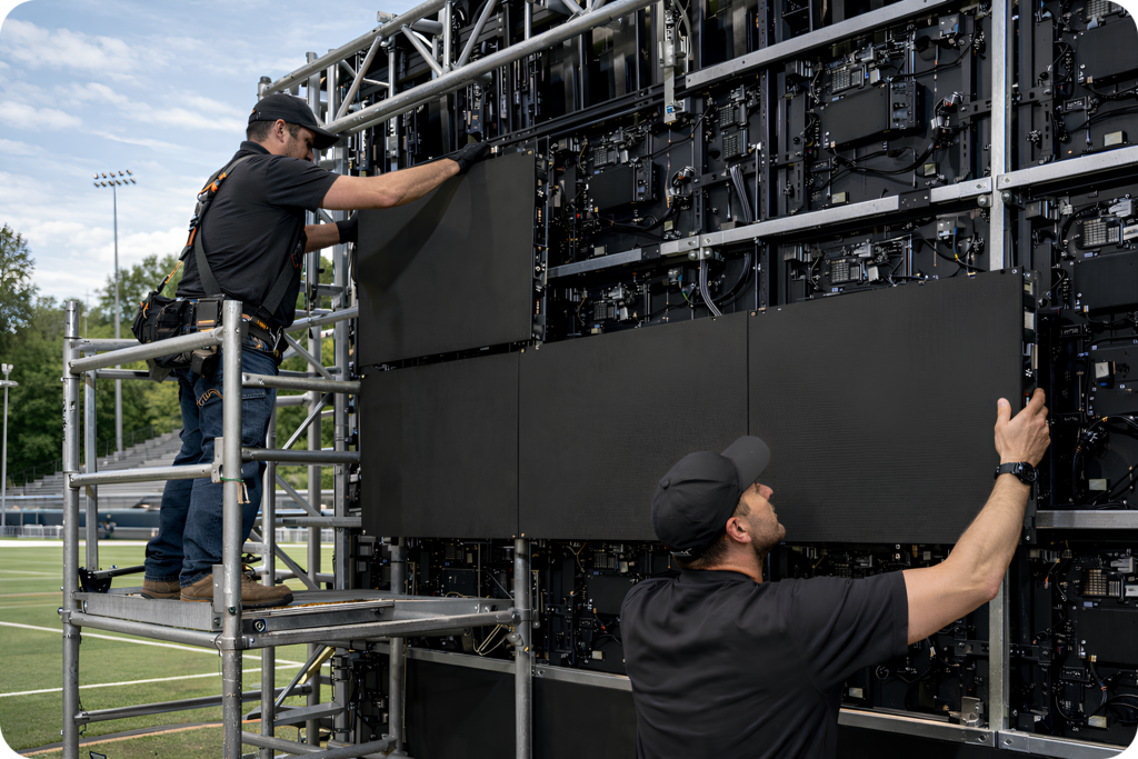 Our LED solutions are designed as complete systems display, structure, control and support tailored to the space, viewing distance and usage pattern.